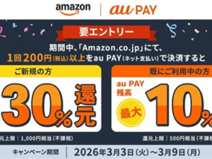 Amazonでau PAYを初めて利用するとau PAY 残高を最大30%還元(KDDI/auペイメント)