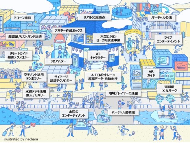 今後は、「道頓堀XRパーク」を2022年3月に実証予定だ。道頓堀のエリア各所にXRのデジタルコンテンツの仕掛けを組み込み、来訪者しか体験できない、リアルとバーチャルが融合した新たなエンタメ体験や情報発信を展開し、エリア全体の来訪価値や回遊性の向上を図るという。