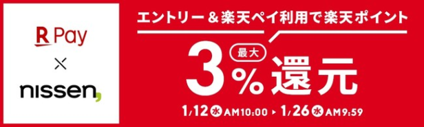 ニッセンは、楽天グループが提供するオンライン決済サービス「楽天ペイ(オンライン決済)」の導入を記念したキャンペーンを、2022年1月12日(10時)~26日(9時59分)まで実施している。
