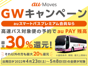 「au Moves 高速バス」、auスマートパスプレミアム会員なら30%還元(KDDI)