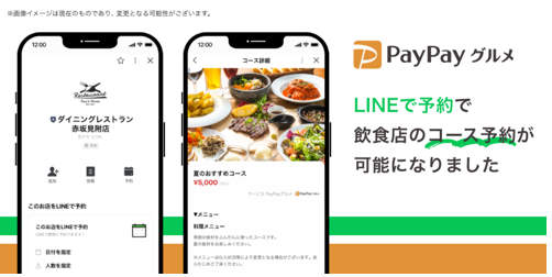 PayPayグルメが「LINEで予約」経由でのコース予約が可能に(ヤフー)
