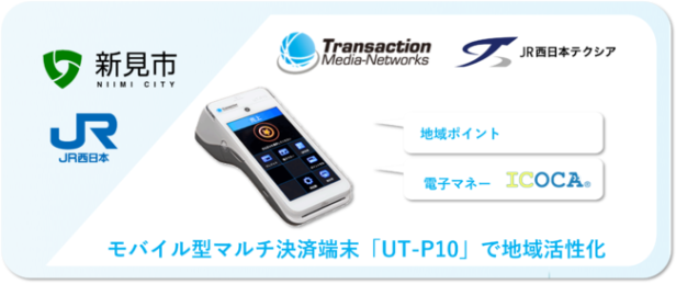 JR西日本と新見市は、JR西日本が発行する交通系ICカード「ICOCA(イコカ)」を活用し、新見市内のみで利用可能な地域ポイントを付与することで、市内の経済循環を創出する、 地域活性化プロジェクトを推進している。同プロジェクトにおいて、TMNのモバイル型マルチ決済端末「UT-P10」がポイント加盟店の端末として採用された。