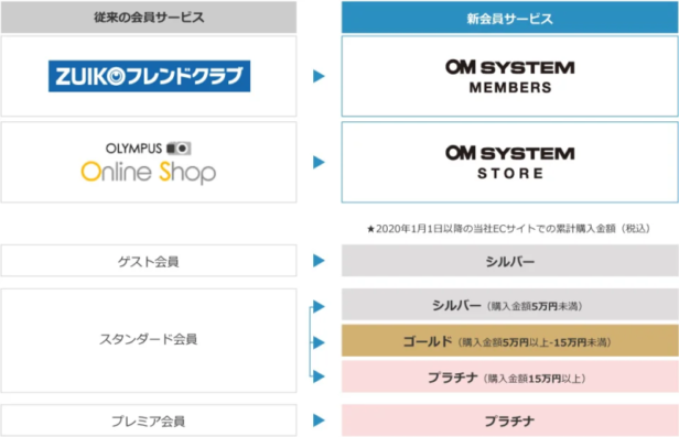 従来の会員サービスと新会員サービスとの比較(OMデジタルソリューションズ)
