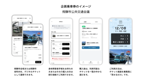 RYDEと飛騨市公共交通会議(岐阜県飛騨市)は提携を開始した。提携に伴い、デジタル乗車券「【全域】飛騨市バス1日乗車券」、「【町内】飛騨市バス1日乗車券」の利用を2022年12月12日から開始する。