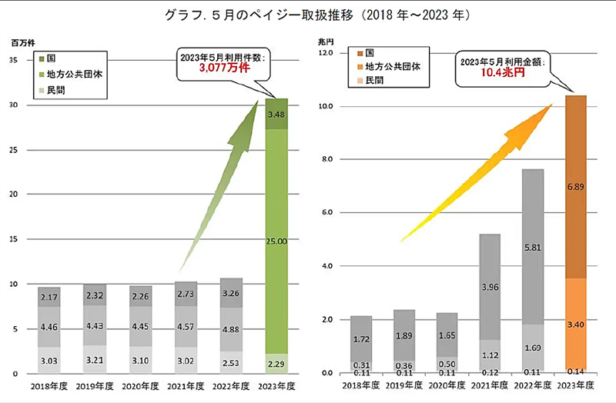 日本マルチペイメントネットワーク推進協議会は、電子決済サービス「Pay-easy(ペイジー)収納サービス」において、自動車税(種別割)などの納税時期と重なる2023年5月の取り扱いが、件数3,077万件(前年同月比288%)、金額10.4兆円(前年同月比136%)と月間過去最高を更新したと発表した。