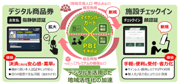 これまで玉川村では2022年7月24日~12月31日に「手ぶらキャッシュレス実証事業」の第一弾として、指静脈認証による村内店舗での地域商品券の利用に取り組んできた。今回、第一弾の取り組み内容に加え、村内施設利用時における顔認証で本人確認ができるほか、指静脈や個人情報の登録時のマイナンバーカードによる本人確認強化など、さらなる機能の拡充を図る。地域商品券や施設利用といった用途に応じて、指静脈と顔での認証手段を使い分けることで、利用者の利便性や店舗での導入効果を高めるそうだ。さらにマイナンバーカードと組み合わせることにより、本人確認や個人情報の入力作業が自動化できるため、正確かつ安全な管理につなげるという。