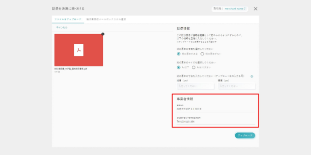 「登録番号」「事業者名」を自動で読み取り、登録。読み取り結果に誤りがあった場合は事業者情報を手動で修正できる(UPSIDER)