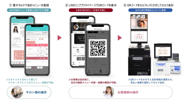 ハイパーソフトが提供する電子カルテ「V-Karte」を併用して利用してもらうことにより、サロンの会計メニューの登録から、利用者への会計情報の提示、セルフ会計までのサロンオペレーションに、デジタルを融合させたスマートな顧客体験の提供が可能となった。