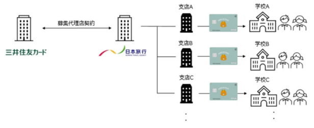 三井住友カードと日本旅行は、三井住友カードが提供するVisaプリペイドカード「かぞくのおさいふ」の募集代理店契約を締結した。海外への修学旅行を実施する全国の中学校や高等学校などに対し、協働で「かぞくのおさいふ」の募集を行う。