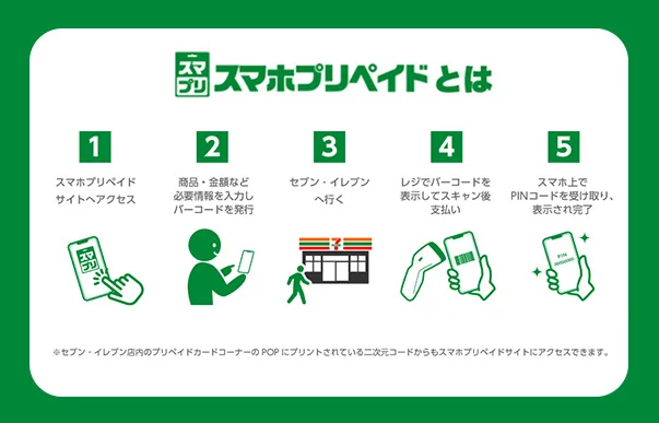「スマホプリペイド」は、「スマホプリペイド」サイトから商品を選択し、スマホ画面に表示されたバーコードを全国のセブン‐イレブンのレジで提示して支払うことで、ポイント付与に使えるPINコードを購入することができるサービスだ。