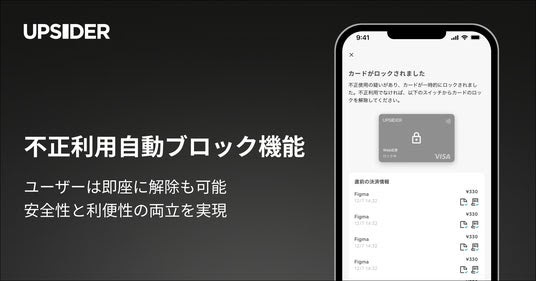 これらの新機能により、UPSIDERユーザーが利用するカードにおいて不正利用の疑いがある決済が行われた時、自動でブロックされるほか、最新の不正利用トレンドを踏まえたオペレーションによるブロックも行われるという。また、カードがロックされた場合、ユーザーへのリアルタイム通知・ユーザー自身でのロック解除の操作をすぐに行ってもらえるようになる。