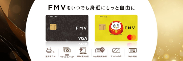 「FMV カード」は、「My Cloud プレミアム カード」で好評だった還元率1%の現金キャッシュバックやFMVサポート特典に加えて、新たに富士通ショッピングサイト「WEB MART」での割引購入特典や、国際ブランドとしてMastercardを利用できるようになり、カードのデザインも一新した。