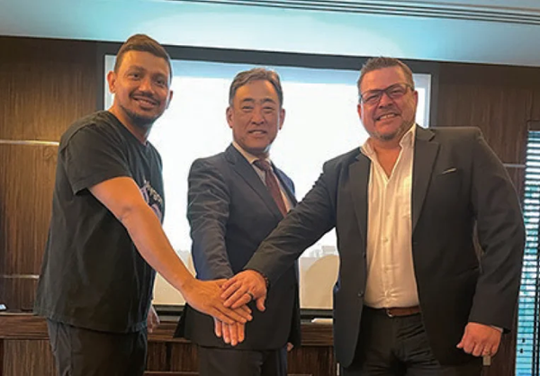 アラブ首長国連邦ドバイでの実証実験の方針を確認するPolygon Labs Founder Sandeep Nailwal氏、ソニー銀行 代表取締役社長 南 啓二氏、SettleMint CEO:Matthew Van Niekerk氏