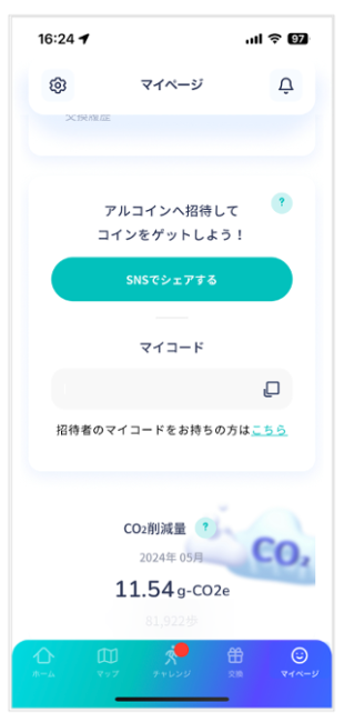 今回、「アルコイン」のユーザーごとの当月(毎月1日の午前3時に歩数の計測がリセット)の総歩数と、総歩数から算出した脱炭素量を、アプリ内のマイページに表示するようにする。総歩数から距離を計算し、英国ビジネス・エネルギー・産業戦略省による温室効果ガス報告を基にした中型ガソリン車の換算係数を用いて、「アルコイン」のユーザーごとのCO2削減量を算出するそうだ。