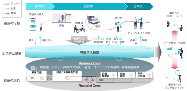 デジタル通貨DCJPYを活用した周遊パスのイメージ図(デジタル通貨フォーラム等)