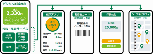 デジタル地域通貨機能では、地域のお金が地域に流れやすくなるため、市内の店舗が元気になることを目指す。ほかにも、関心がある分野を選んで、行政からの通知を受け取ることや、図書館利用者カードを市民アプリに取り入れ、スマホ1つで本を借りること、医療機関を検索し、診療時間や保有設備、対応可能な疾患などを調べることができるそうだ。