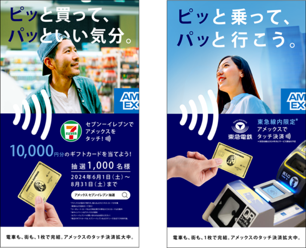 直近の取り組みでは、セブン‐イレブン店舗での取り組みを実施。利用者は2024 年 6 月 1 日~8月 31 日まで、アメリカン・エキスプレスのタッチ決済を利用して全国のセブン‐イレブンの店舗で買い物すると、抽選で 1,000 名に 1万円分のギフトカードが当たるキャンペーンを実施している。