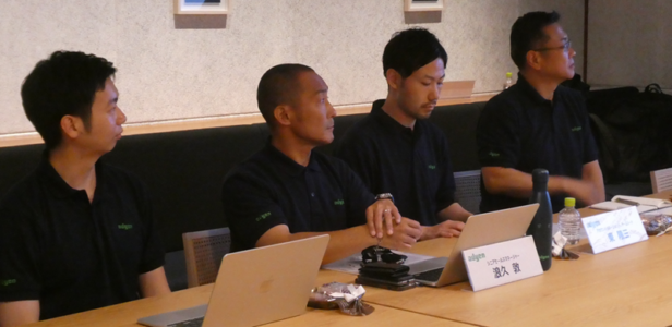 右からAdyen Japan Acquiring シニア・パートナーシップ・マネージャー 三田和弘氏、アカウントマネージメント、チームリード 東隆三氏、シニアセールスマネージャー 浪久敦氏、デモを実施したPOSサポートエンジニアリング ユージン アン氏