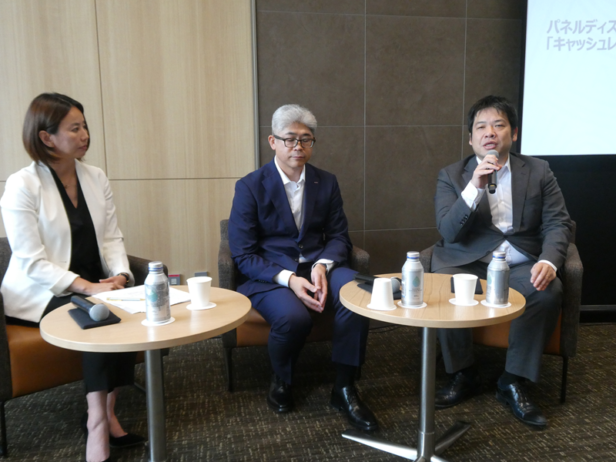左からアメリカン・エキスプレス・インターナショナル, Inc. 加盟店事業部門 副社長 谷川 美紀氏、カクヤスグループ 代表取締役社長兼CFO 前垣内 洋行氏 、スマートガバナンス 代表取締役共同創業者 落合 孝文氏