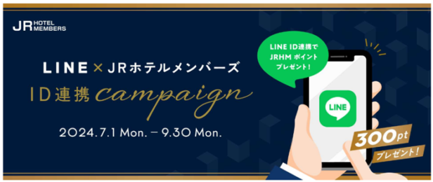 LINE での会員証の提供開始に伴い、2024 年 7 月 1 日12時~9 月 30 日の期間、「LINE×JR ホテルメンバーズ ID 連携キャンペーン」を実施する。同キャンペーン期間中に LINE ID 連携した JR ホテルメンバーズ会員(新規入会含む)を対象に、もれなく JR ホテルメンバーズポイント「300pt」をプレゼントするという。