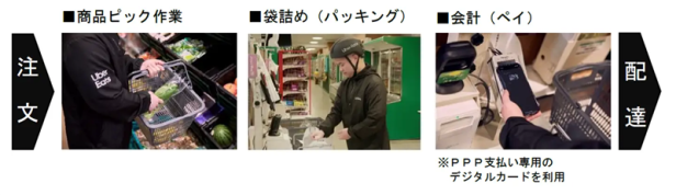 PPPは「Uber Eats」の配達パートナーが、注文商品のピック作業・袋詰めから会計・配達までを一貫して手掛ける機能となる。