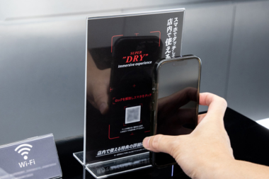現在店舗に設置している「MEET」は来店者に向けた来店特典の申込みページへの誘導に活用されており、1FとB1FのSUPER DRY BAR の各テーブルに設置されている。スマートフォンよりも一回り大きい「MEET EASY ACCESS」が活用されており、卓上POPにスマートフォンをタッチするとブラウザが立ち上がり、申込みページが表示される。
