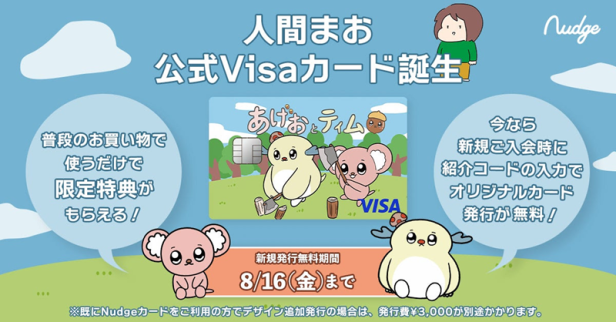 ナッジは、クレジットカード「Nudge(ナッジ、以下ナッジカード)」において、2024年7月16日、アニメ「あげおとティム」作者の「人間まお」クラブを開設した。このクラブでは、ナッジカードを利用することで、その一部が人間まおさんの創作活動の支援に活用される。