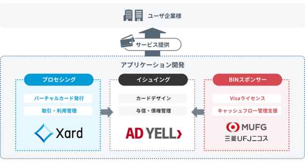 「AD YELL」の法人カード発行にあたり、三菱UFJニコスがVisaライセンスを提供するBINスポンサーとなり、同社はVisaとの資金精算等のキャッシュフロー管理等においても支援を行う。