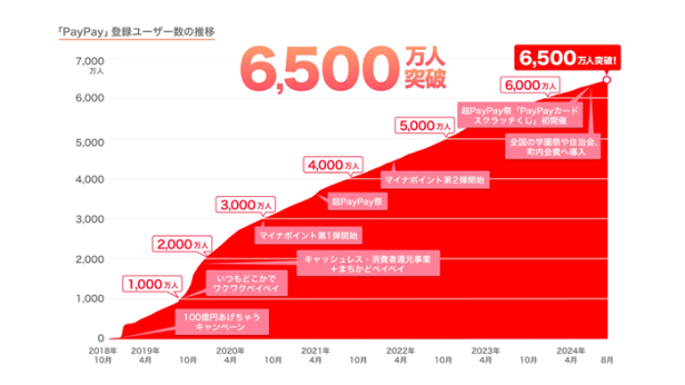「PayPay」の登録ユーザーが6,500万人を突破(PayPay)
