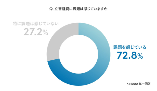 具体的に、20〜50代の会社員1000名に対し、立替経費に課題を感じているか聞いたところ、72.8%が「課題を感じている」と回答した。