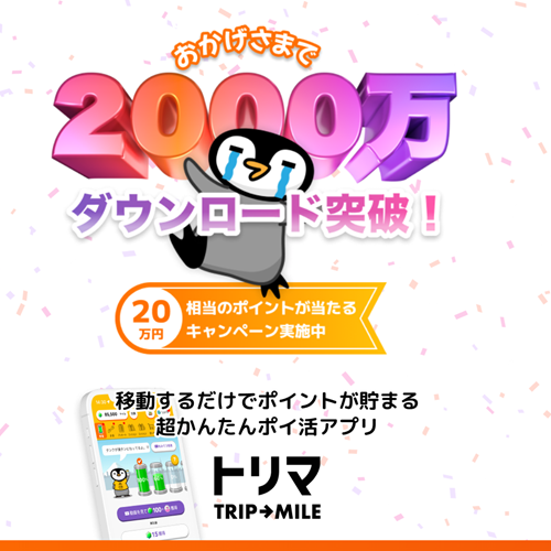 ジオテクノロジーズが提供する、移動するだけでポイントが貯まるポイ活アプリ「トリマ」が、正式版の提供開始から約4年で累計2,000万ダウンロードを突破した。