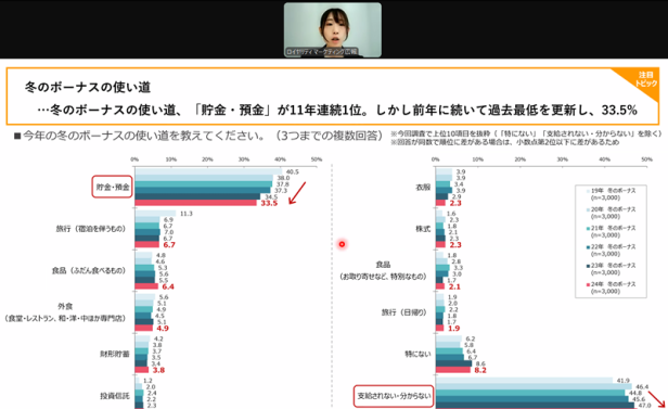 冬のボーナスの使い道、「貯金・預金」が11年連続1位も 「支給されない・分からない」は半数近い47.7%(LM調査)