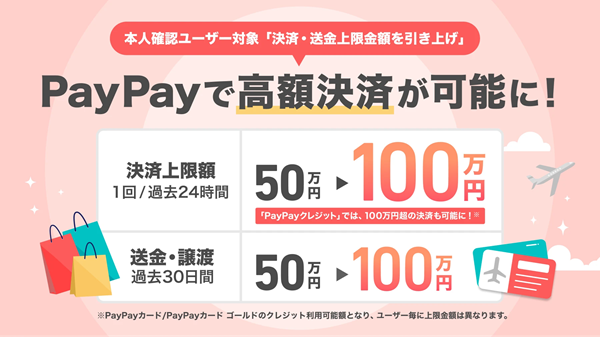 The post 1回あたりの決済上限額を50万円から100万円に(PayPay) first appeared on ペイメントナビ.
