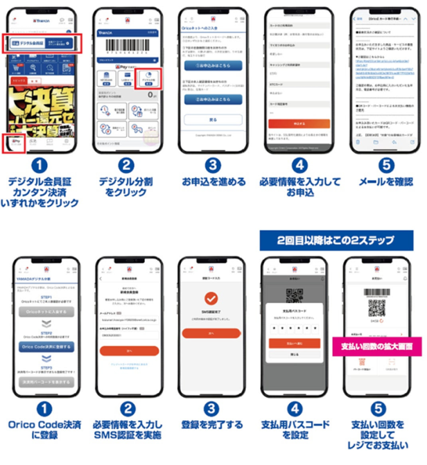 「YAMADAデジタル分割」申し込みの流れ(上)と利用のながれ(オリコ)