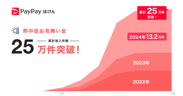 同保険は、2022年の提供開始以降、熱中症対策の1つとしてさまざまなユーザーからの支持を得て累計加入件数は25万件を突破した。また、2024年単年の加入件数は、2022年と2023年の販売での累計加入件数の11.8万件を上回る13.2万件を記録している。