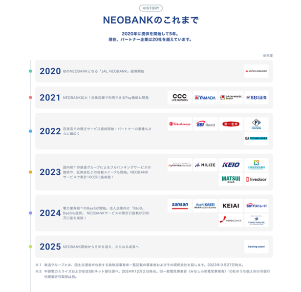 2025年4月28日、住信SBIネット銀行の日本初のフルバンキングBaaS第1号となる「JAL NEOBANK」を提供開始してから5周年を迎えた。この5年間で、「NEOBANK」は22社の企業と提携しており、各提携先の特色を活かした新たな銀行サービスを提供してきた。