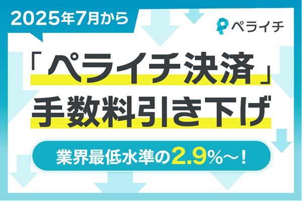 同社では、2025年7月から「ペライチ決済」の決済手数料を、現行の「3.5%~」から「2.9%~」に一部引き下げることとなった。