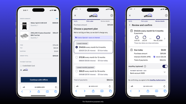コストコ オンラインでショッピングをする会員は、チェックアウト時にAffirmを使用して、延滞料金や隠れたコストなしで分割払いを行うことができるという。