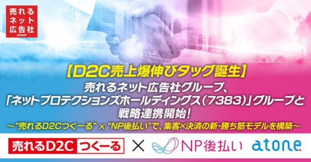 売れるネット広告社グループは、2025年5月30日付で、東証プライム上場企業ネットプロテクションズホールディングスの中核子会社であるネットプロテクションズとの戦略的業務連携を開始し、D2C事業者向けの売上最大化と収益構造改善を支援する新サービスの提供を開始した。