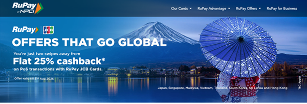 RuPay JCBカードでのPOS取引で一律25%のキャッシュバック(出典:RuPayのキャンペーンサイト)
