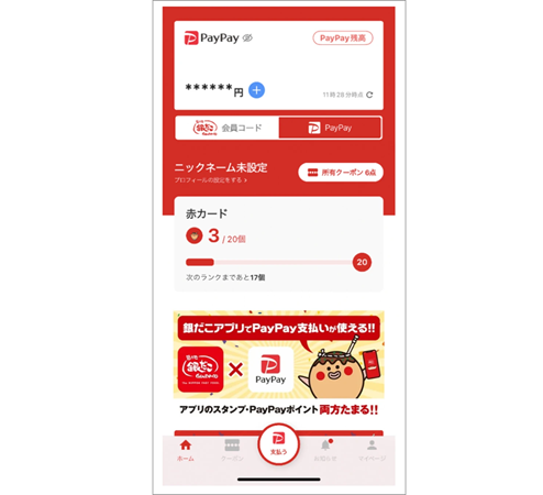 銀だこアプリ トップ画面※画像はイメージ(PayPay)