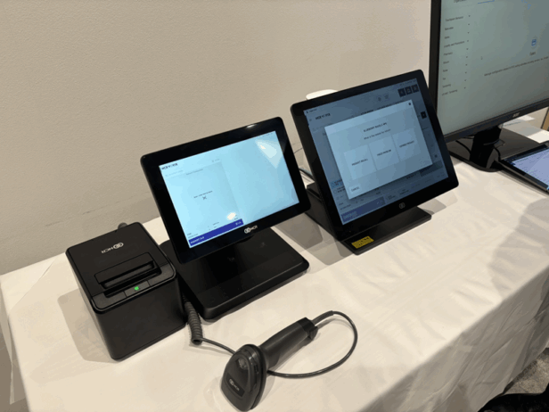 POSシステムのデモ。米国では1店舗70ドルで提供しており、日本でも同様のコストに近づけたいとした