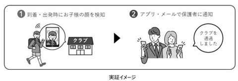 第一弾として、スイミングスクールに通う子どもの入退館を顔認証で検知し、当該情報を保護者に通知する実証実験を、8月8日~〜10月24日(予定)までスイミングスクール「NECグリーンスイミングクラブ溝の口(神奈川県川崎市)」において実施する。同実証では、子どもの入退館を顔認証で検知し、自動で「入館通知」および「退館通知」を保護者に配信する仕組みの効果を検証する。