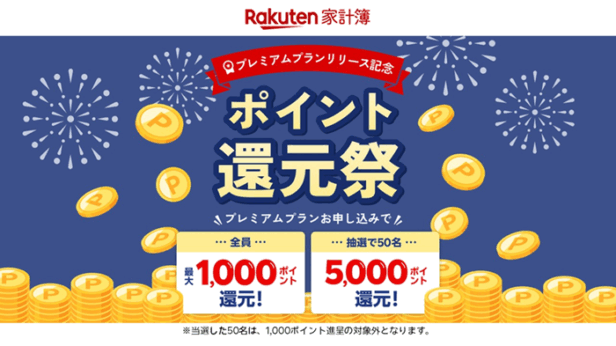 「楽天家計簿」、プレミアムプラン開始記念「楽天ポイント」進呈キャンペーン(楽天)
