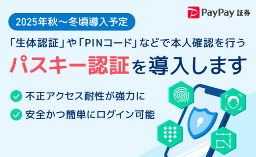 「パスキー認証」を2025年秋から冬頃に導入へ(PayPay証券)