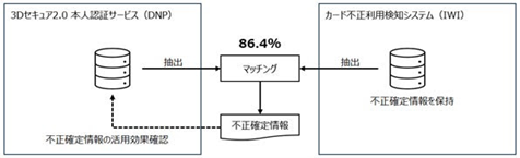 大日本印刷(DNP)とインテリジェントウェイブ(IWI)は、非対面決済市場における不正取引対策を強化する取り組みを進めているが、このほどDNPが提供する「3Dセキュア2.0 本人認証サービス」と、IWIが提供する「カード不正利用検知システム」の間でデータマッチングを行う実証実験の結果、86.4%のマッチング率を実現した。