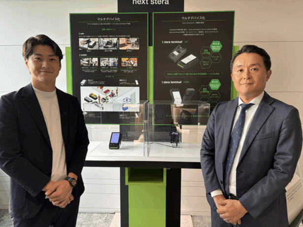 日本のキャッシュレス決済比率が政府目標の40%を前倒し達成し、次なる目標の80%へ向けた取り組みが課題になる中、三井住友カードのマーチャントビジネス統括部長の秋田篤志氏とマーチャントビジネス推進部部長代理の米田恭輔氏はインタビューに応じ、オールインワン決済端末「stera terminal(ステラターミナル)」をはじめとするstera事業を中核に据えた加盟店の拡大戦略を明らかにした。