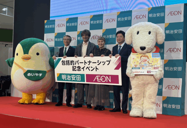 明治安田生命保険相互会社(明治安田)とイオンは、両社の包括的パートナーシップの主要施策のひとつである「健康増進イベント」を推進するため、2025年10月18日~19日にイオンレイクタウンmori 木の広場にて【明治安田×イオン「包括的パートナーシップ」記念イベント】を開催した。開催2日目の10月19日には、両社の地域と健康にかかる取り組みや包括的パートナーシップのほか、両社が連携した新たなサービスについても発表。また、本並 健治さん・丸山 桂里奈さん夫婦をゲストにトークイベントを実施した。
