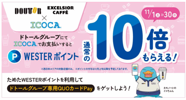 11 月はポイント 10 倍キャンペーンを実施(JR西日本/ドトールコーヒー)