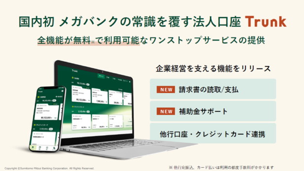 SMBC「Trunk」3万口座突破、請求書決済機能で法人BtoB決済領域に本格参入